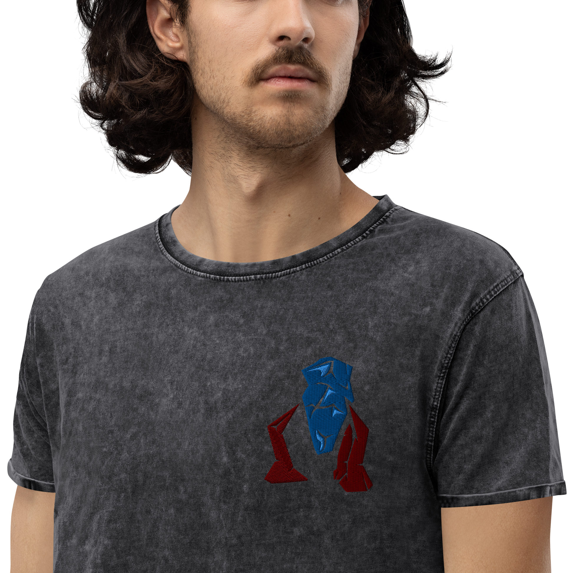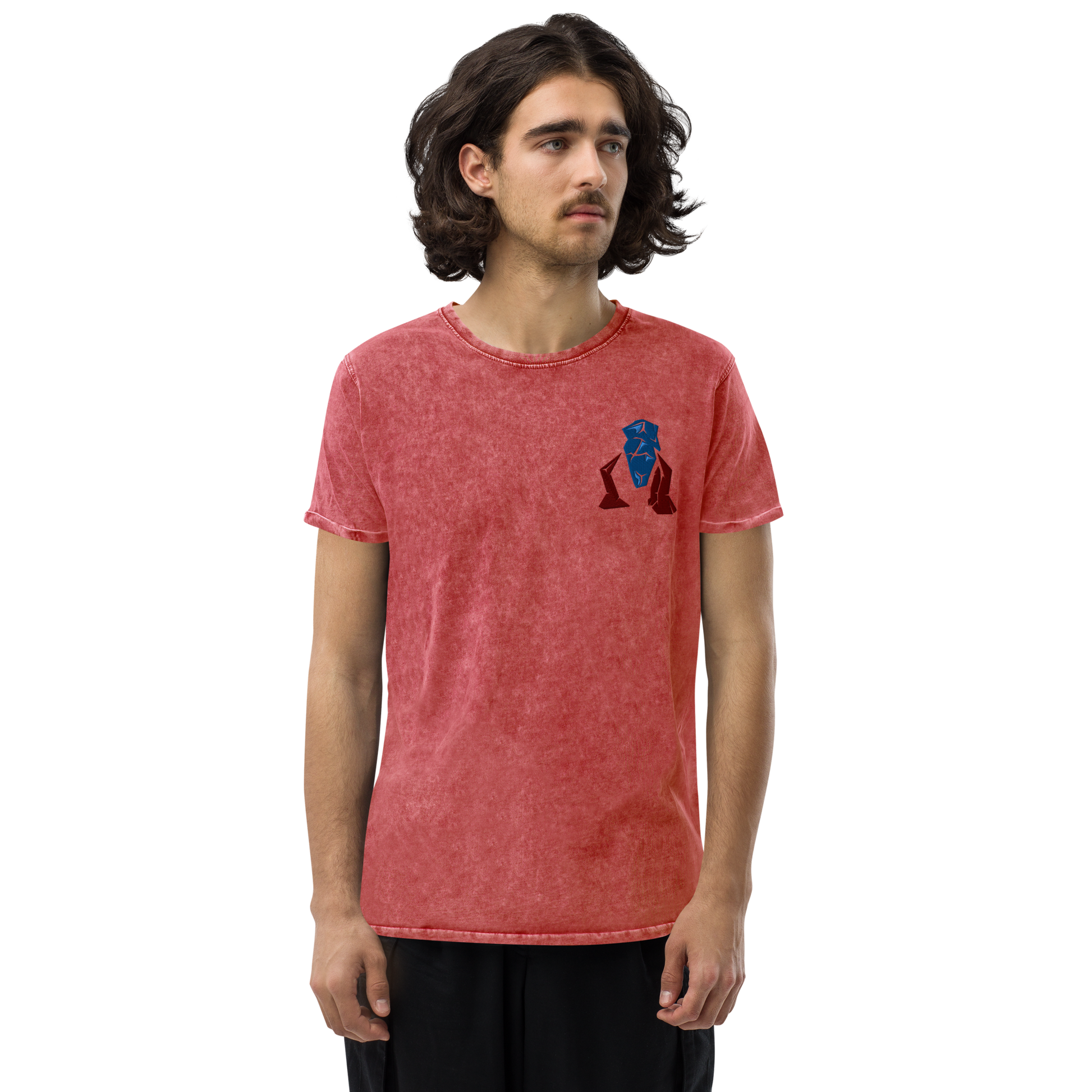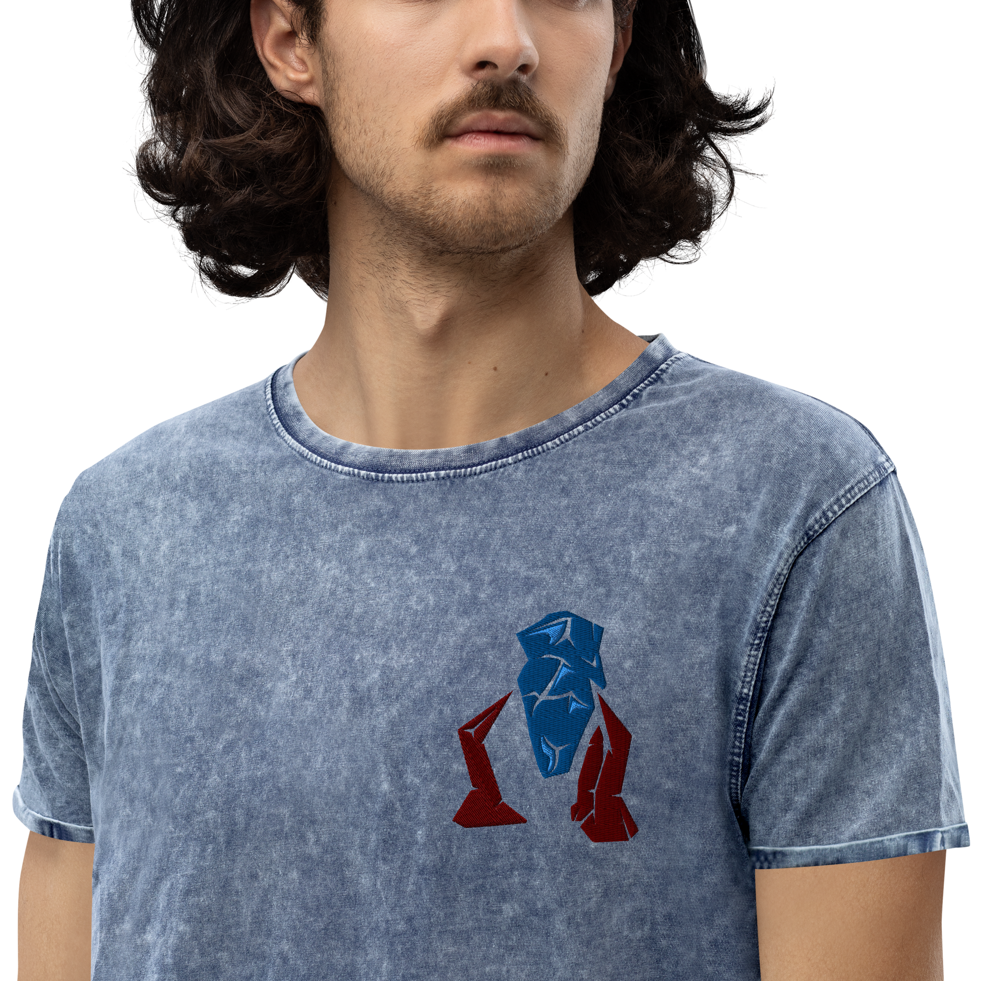 Esta camiseta vaquera está confeccionada 100 % en algodón peinado y tiene un escote redondeado clásico con puños acanalados. ¡Es suave, cómodo e imprescindible para todo entusiasta de la moda!