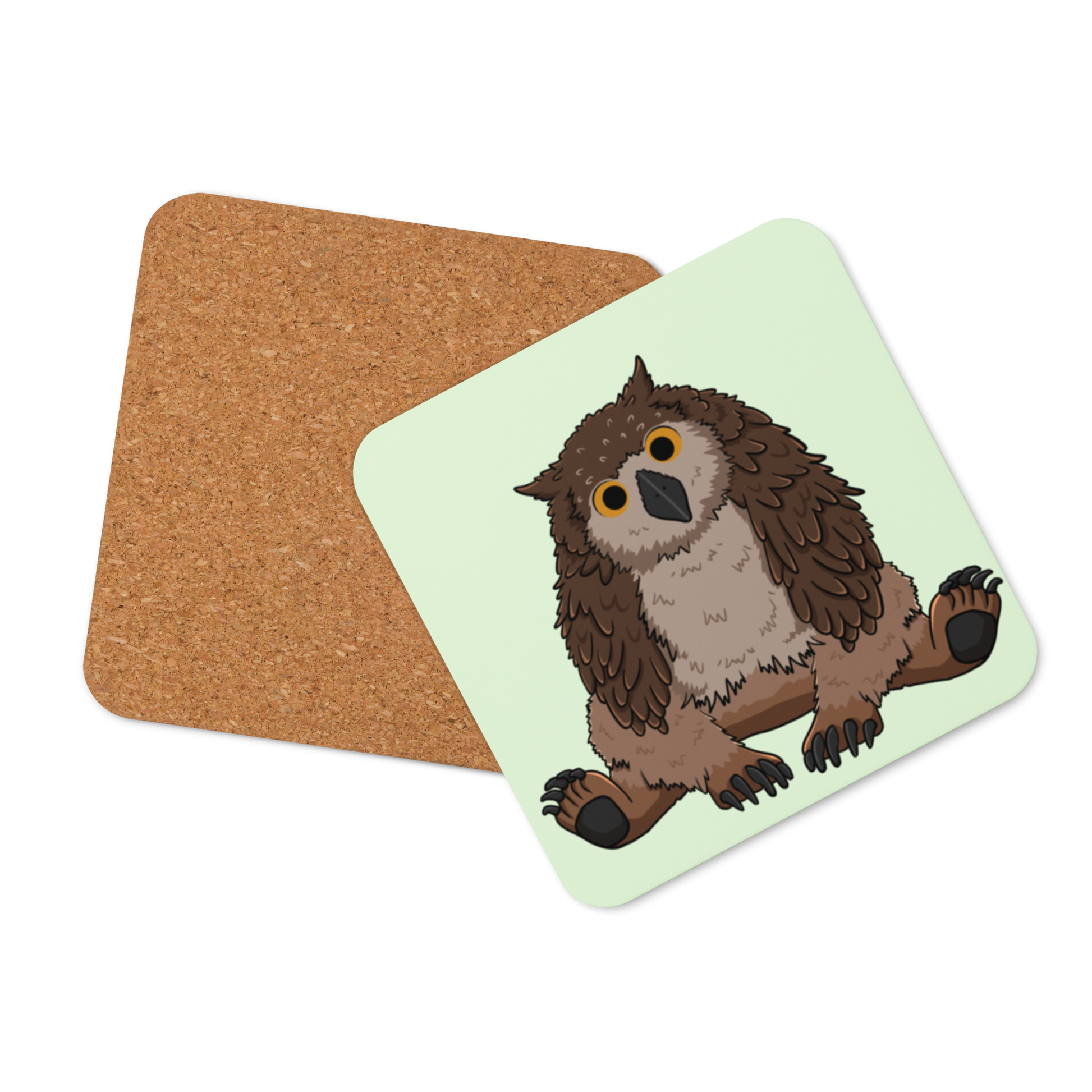 Featuring Baldur's Gate 3's favourite fluffy companion, this Owlbear cork-back coaster is a perfect match for your favorite mug! Create a homey feel while protecting your coffee table or nightstand from mug stains and moisture. The coaster is waterproof and heat-resistant, designed to last a long time. Buy it for yourself or as a lovely gift for your friends and family.